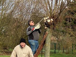 Im Februar wurde rund um die Fischerhütte bei allerschönstem Wetter kräftig angepackt. Um wieder freien Blick auf die Südsee zu erhalten, wurde Dornensträucher und Stauden zurückgeschnitten. Außerdem haben die Kopfweiden, welche symbolisch die kreisangehörigen Gemeinden des Kreises Wesel darstellen, eine "Rasur" erhalten. Bei den Sitzgruppen wurden in emsiger Handarbeit alle Fugen ausgekratzt und gefegt. Ein großes Dankeschön an die Helfer!