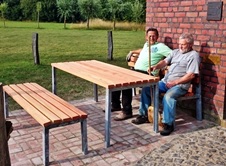 In einer konzertierten Aktion tauschten die Arbeitsgruppe der "12 Apostel" des Heimat- und Bürgervereins in der 3. Juliwoche die marode gewordene und mittlerweile unansehnliche Sitzgruppe vor der Tür "ihrer" Fischerhütte aus. Die aus dem Erlös des letztjährigen Fischerhüttenfestes finanzierte, hochwertige Garnitur ergänzt optisch das Ensemble der bereits installierten Bänke und Tische außerhalb der Umzäunung. Die ergonomisch geformten Möbel bieten ein entspanntes Sitzvergnügen. Zudem pflasterten die Aktivisten den Bodenbereich mit passenden Feldbrandsteinen, so dass die ungetrübte Nutzung auch kurz nach einem Regenguss möglich sein wird. Der Heimat- und Bürgerverein hofft, dass diese nachhaltige Investition rege genutzt und geschätzt wird, um eine möglichst lange Nutzung zu gewährleisten. Der Lüttingen "Sonnenuntergangs-Hot-Spot" ist nämlich längst kein Geheimtipp mehr...